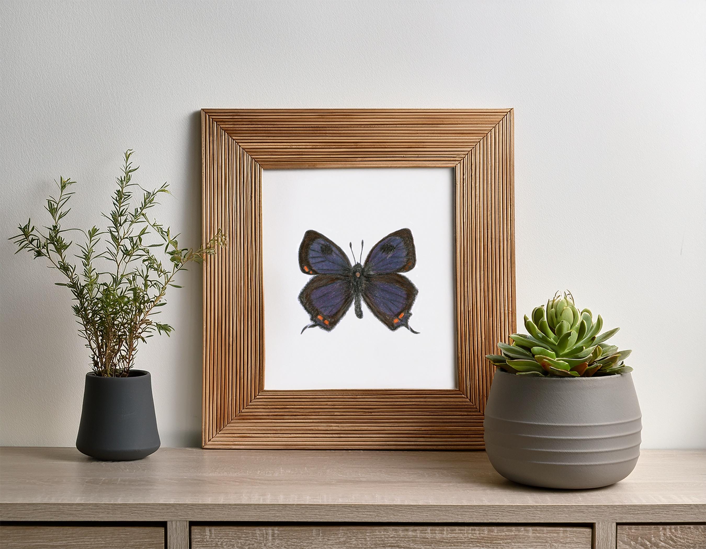 Why You'll Love It: The Colorado Hairstreak offers a soft splash of violet tones, with a woodland story tucked into every wing. This print brings elegance and intrigue to bedrooms, offices, or gallery walls — ideal for butterfly lovers and forest wanderers alike.