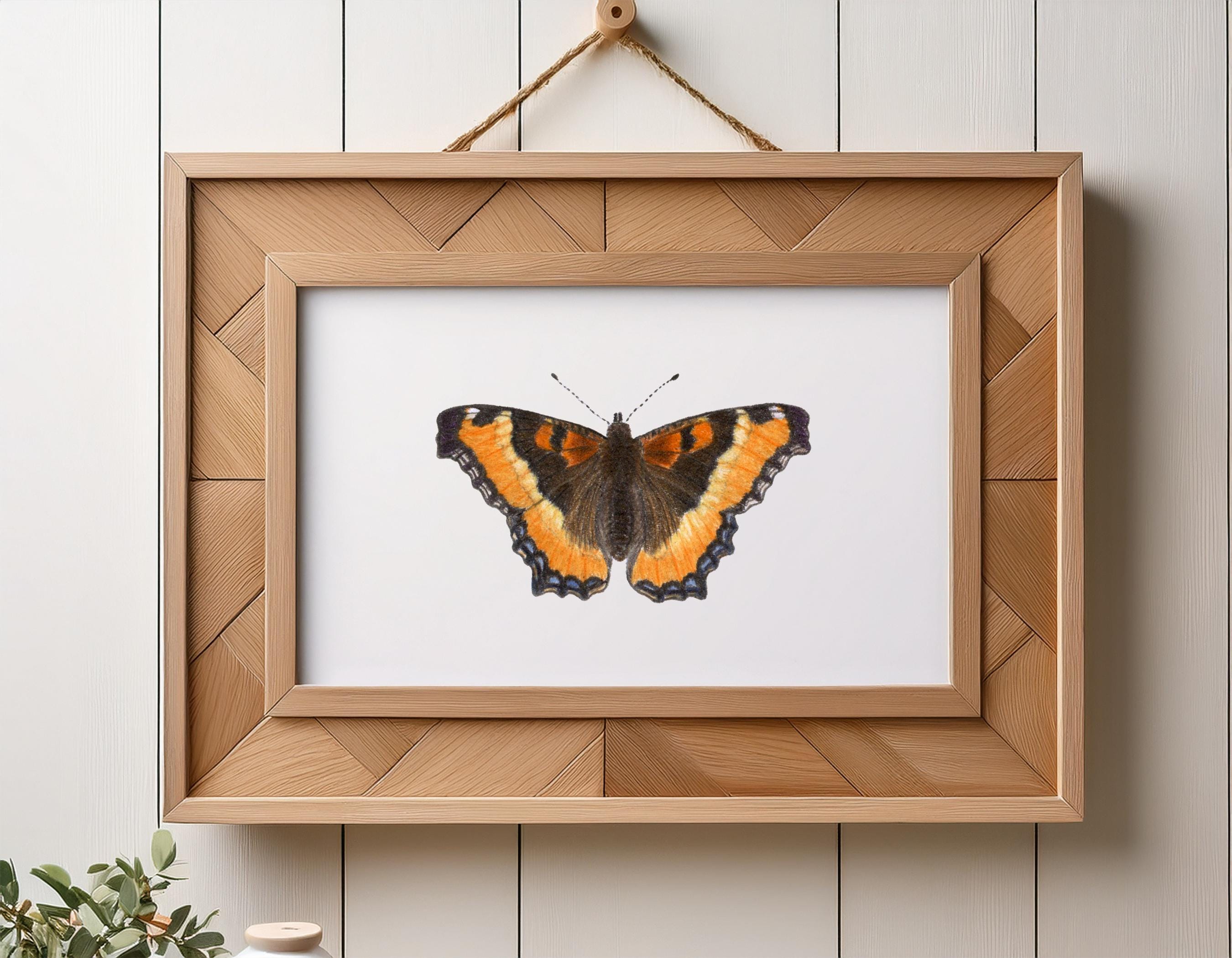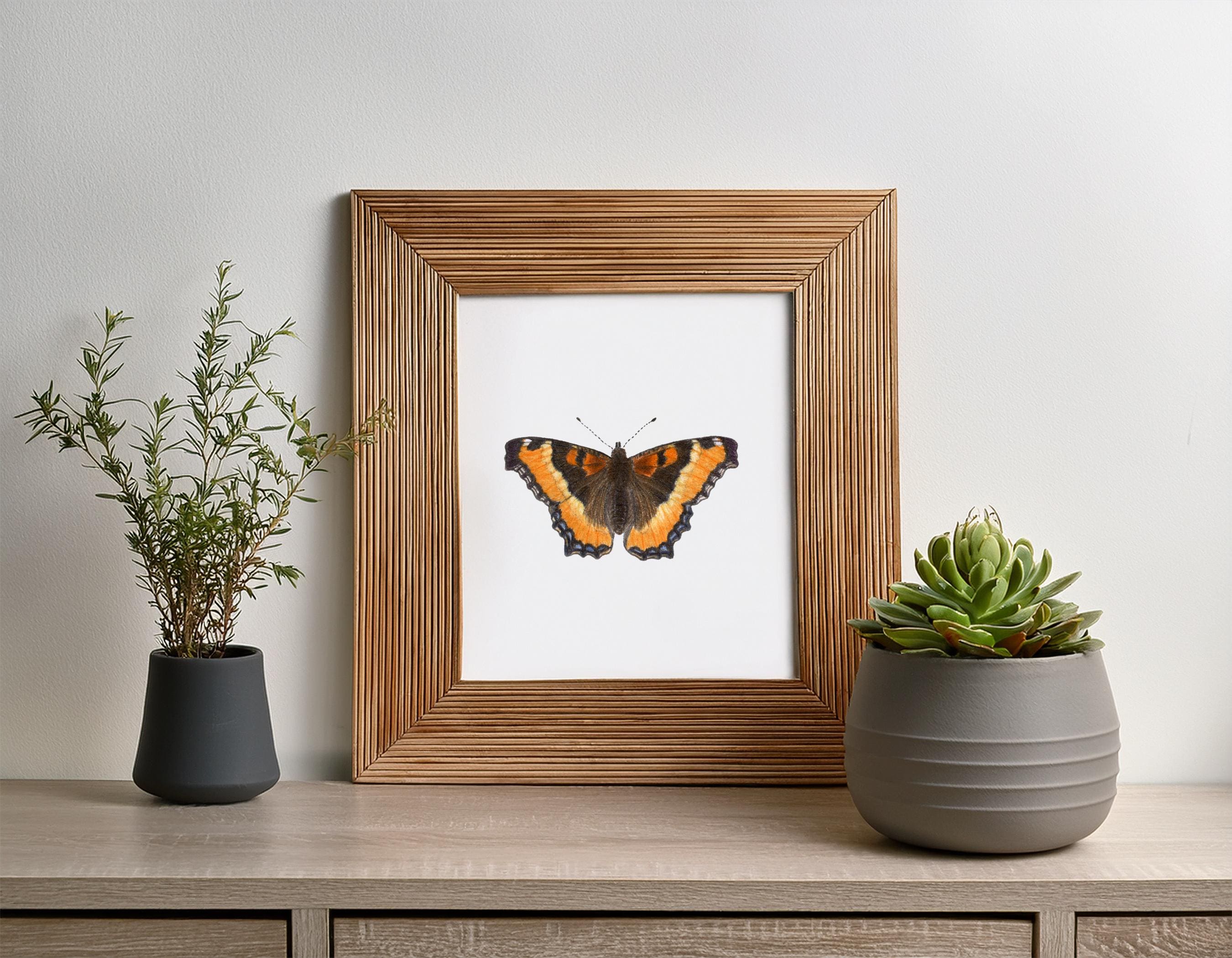 Why You'll Love It: The Milbert’s Tortoiseshell is bold, fiery, and full of movement — a dramatic yet earthy addition to any art wall. It pairs beautifully with more subtle species in your collection or stands confidently on its own.