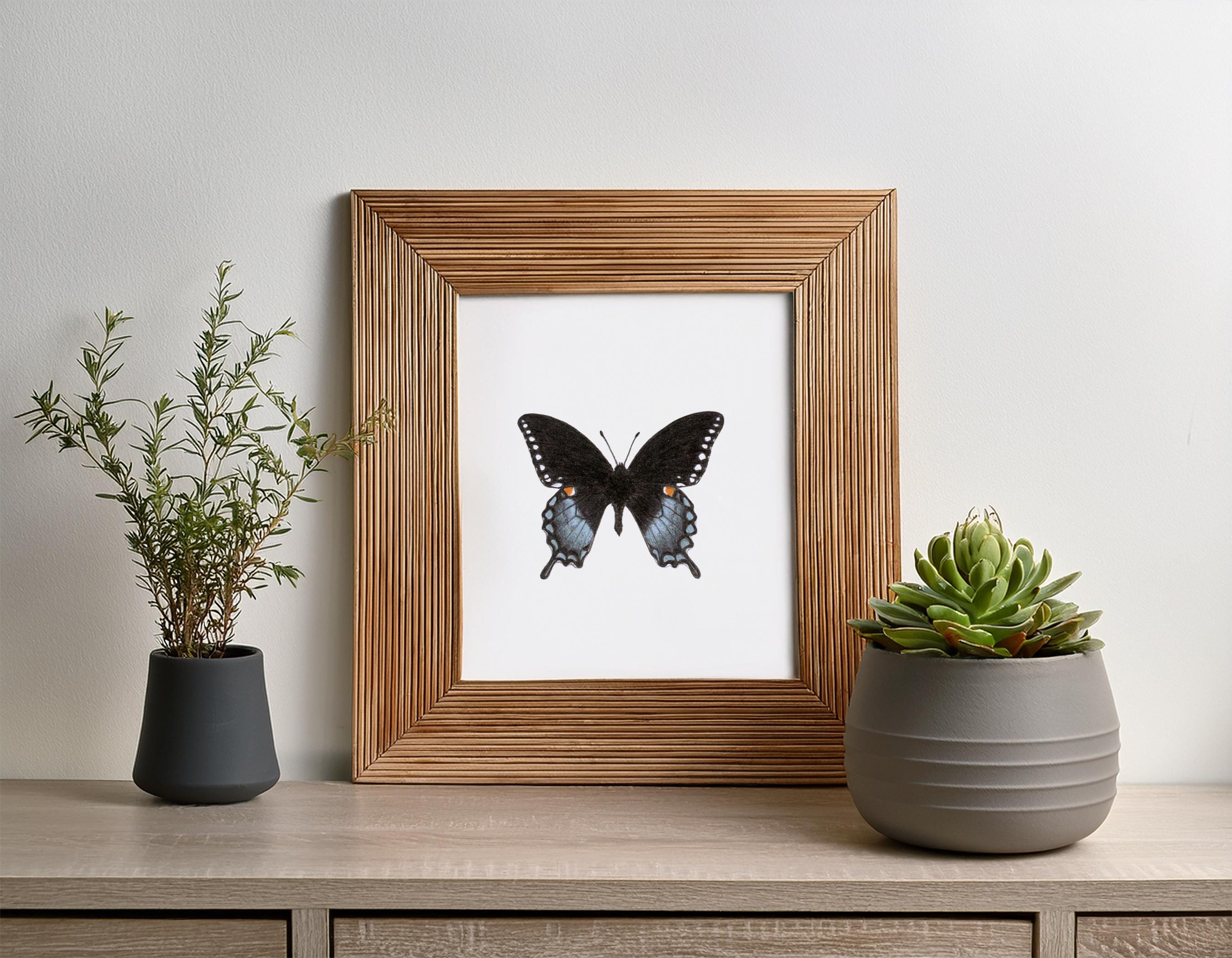 Why You'll Love It: The Spicebush Swallowtail adds richness and calm to any space — perfect for darker palettes, shadowy gallery walls, or moody natural interiors. Its elegance and symbolism make it a beautiful standalone print or a dramatic pairing with other swallowtails.