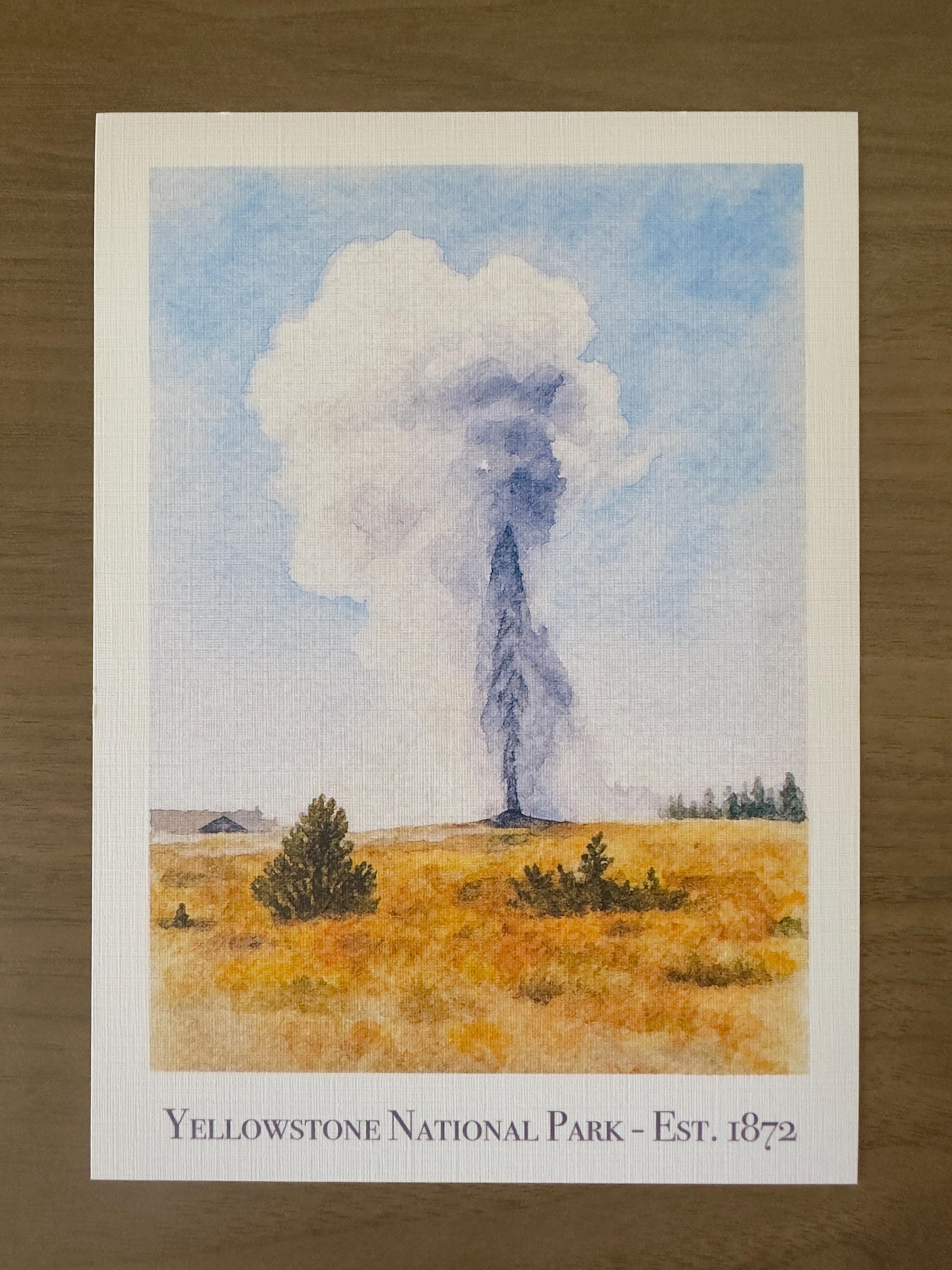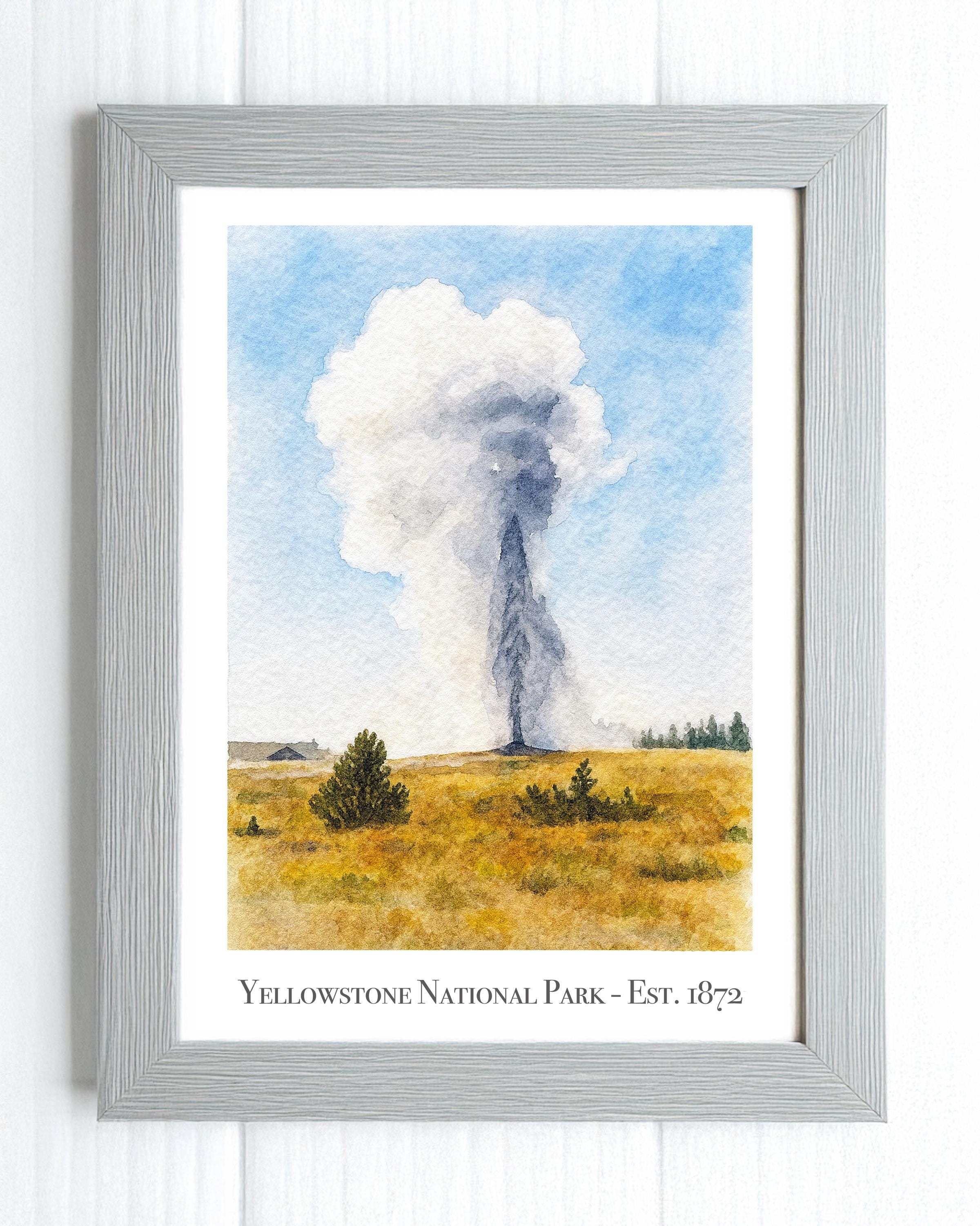 Details: - Print size: 5x7 inches - Medium: Archival quality fine art paper (linen or matte finish) - Text on print: “Yellowstone National Park - Est. 1872” * Frame not included