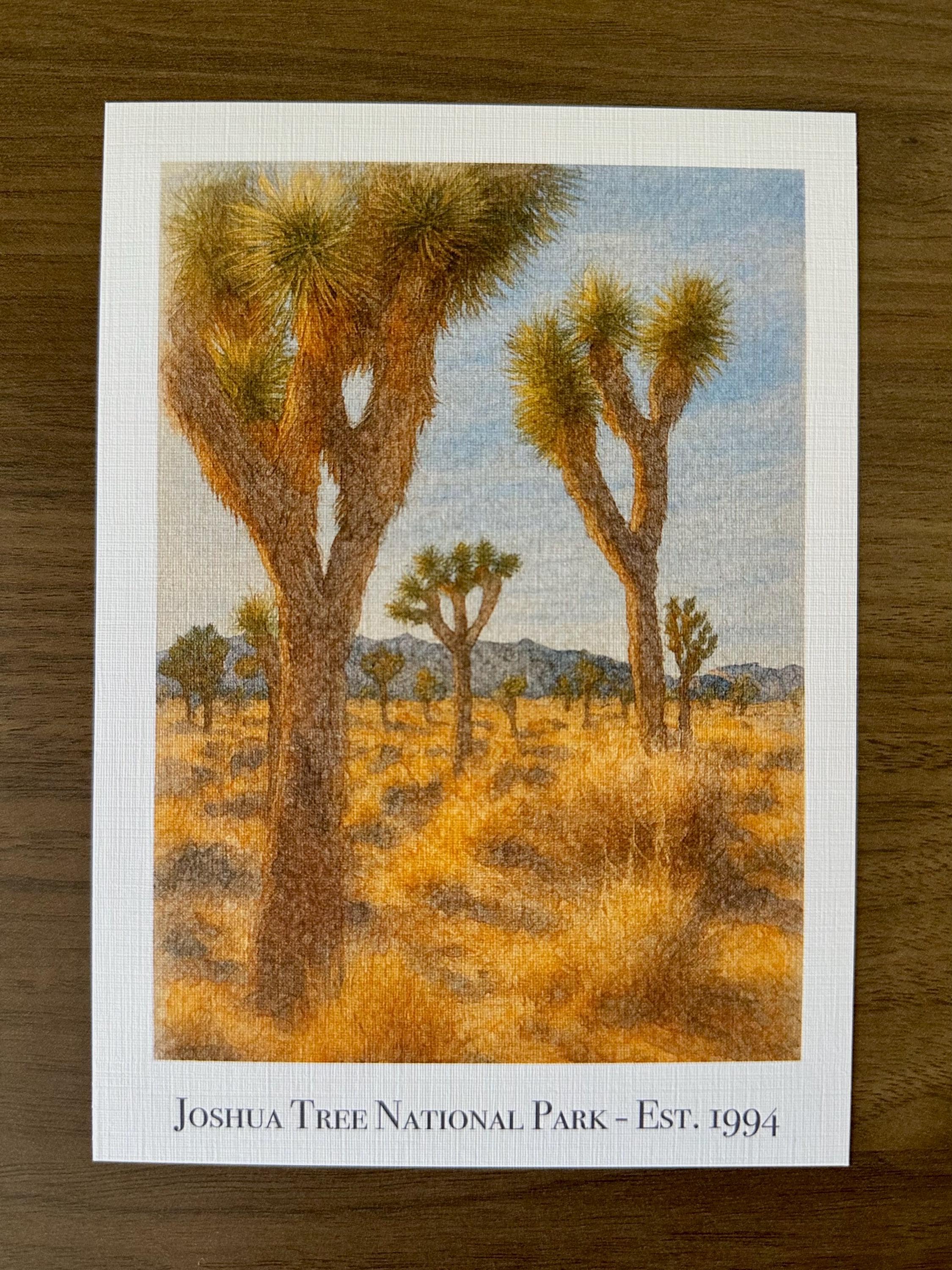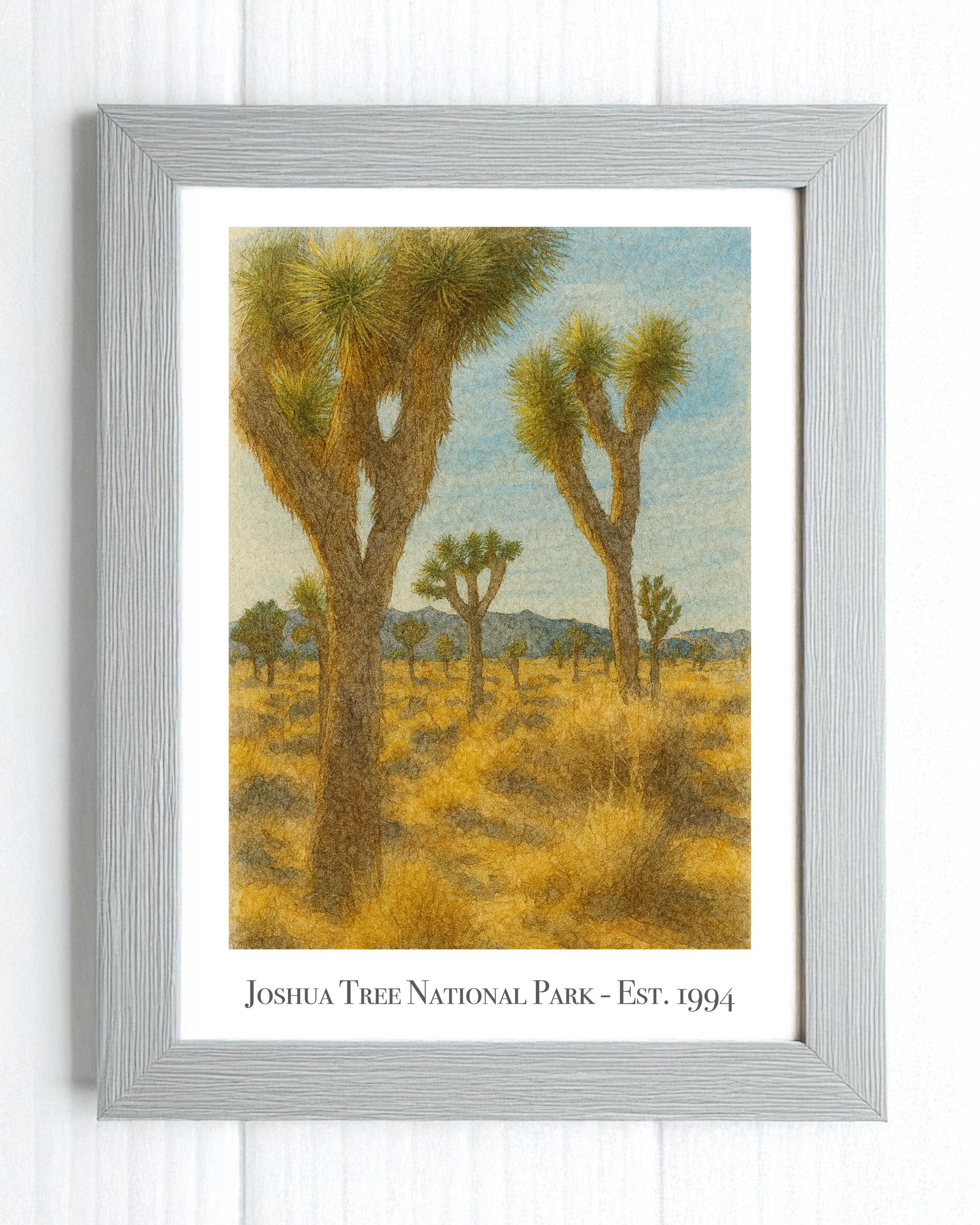 Details: - Print size: 5x7 inches - Medium: Archival quality fine art paper (linen or matte finish) - Text on print: “Joshua Tree National Park - Est. 1994” * Frame not included