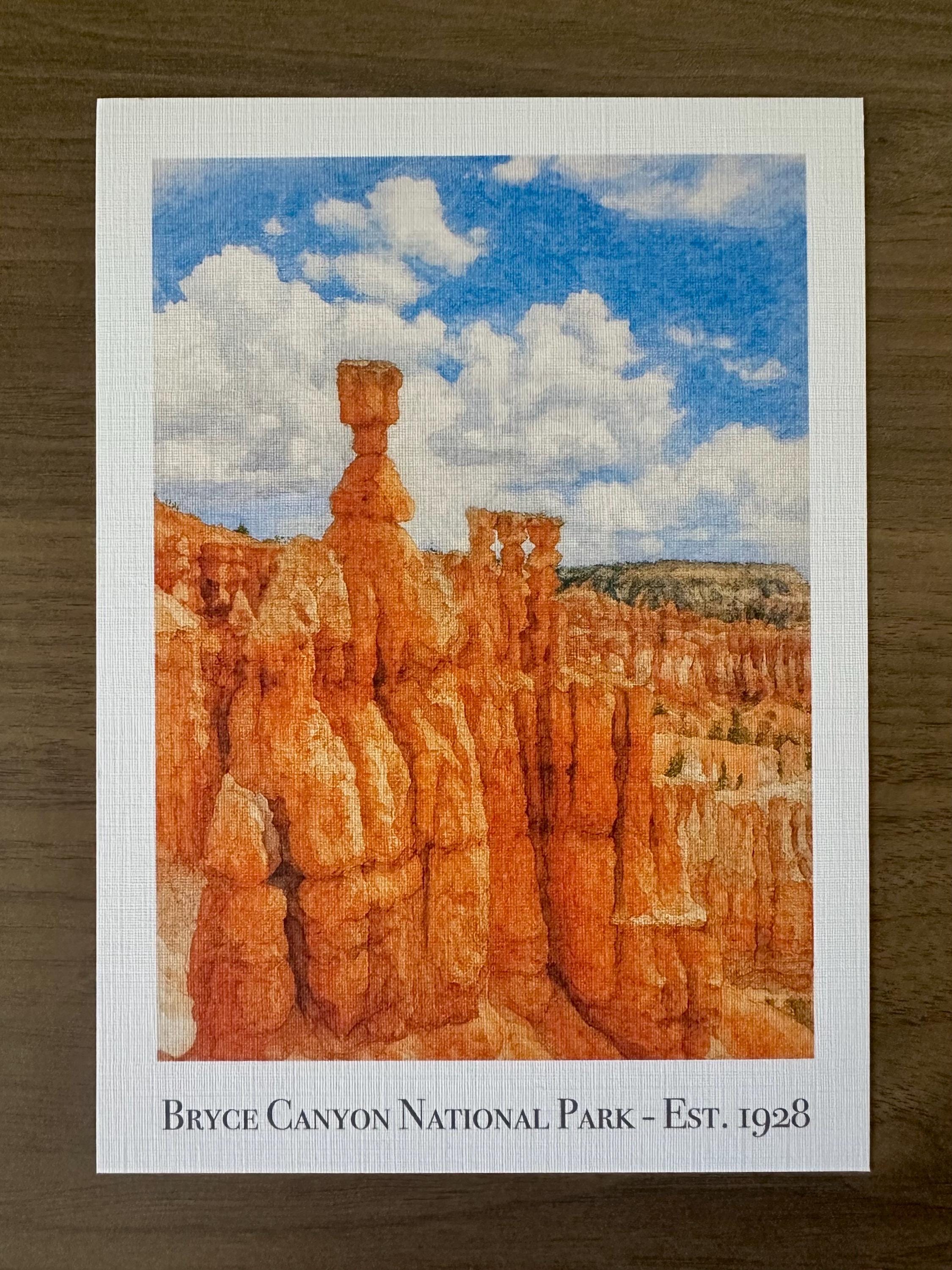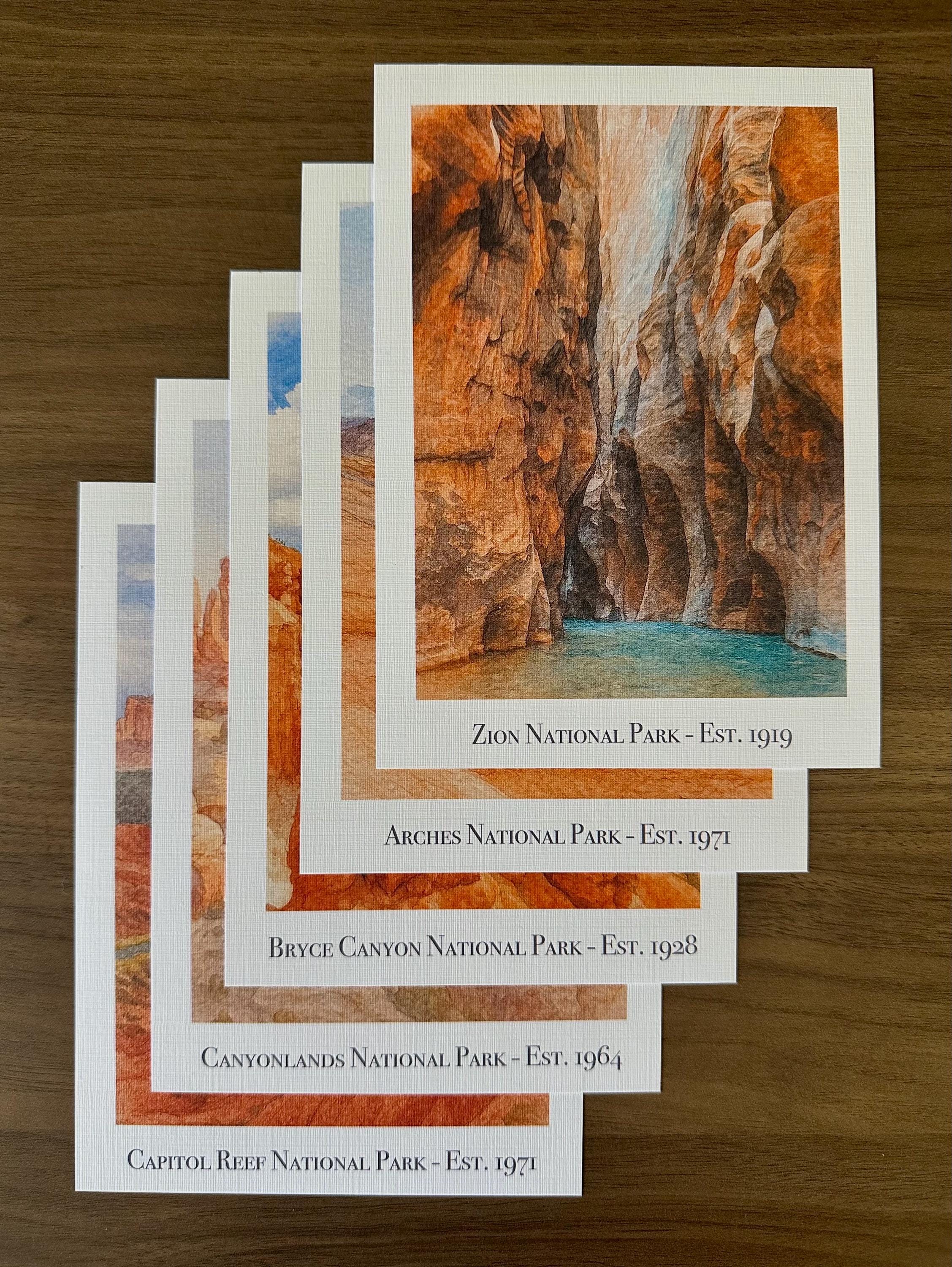 Details: - Includes 5 prints: Zion, Arches, Bryce Canyon, Canyonlands, and Capitol Reef - Print Size: 5x7 inches - Medium: Archival quality fine art paper (matte or linen finish) * Frames not included