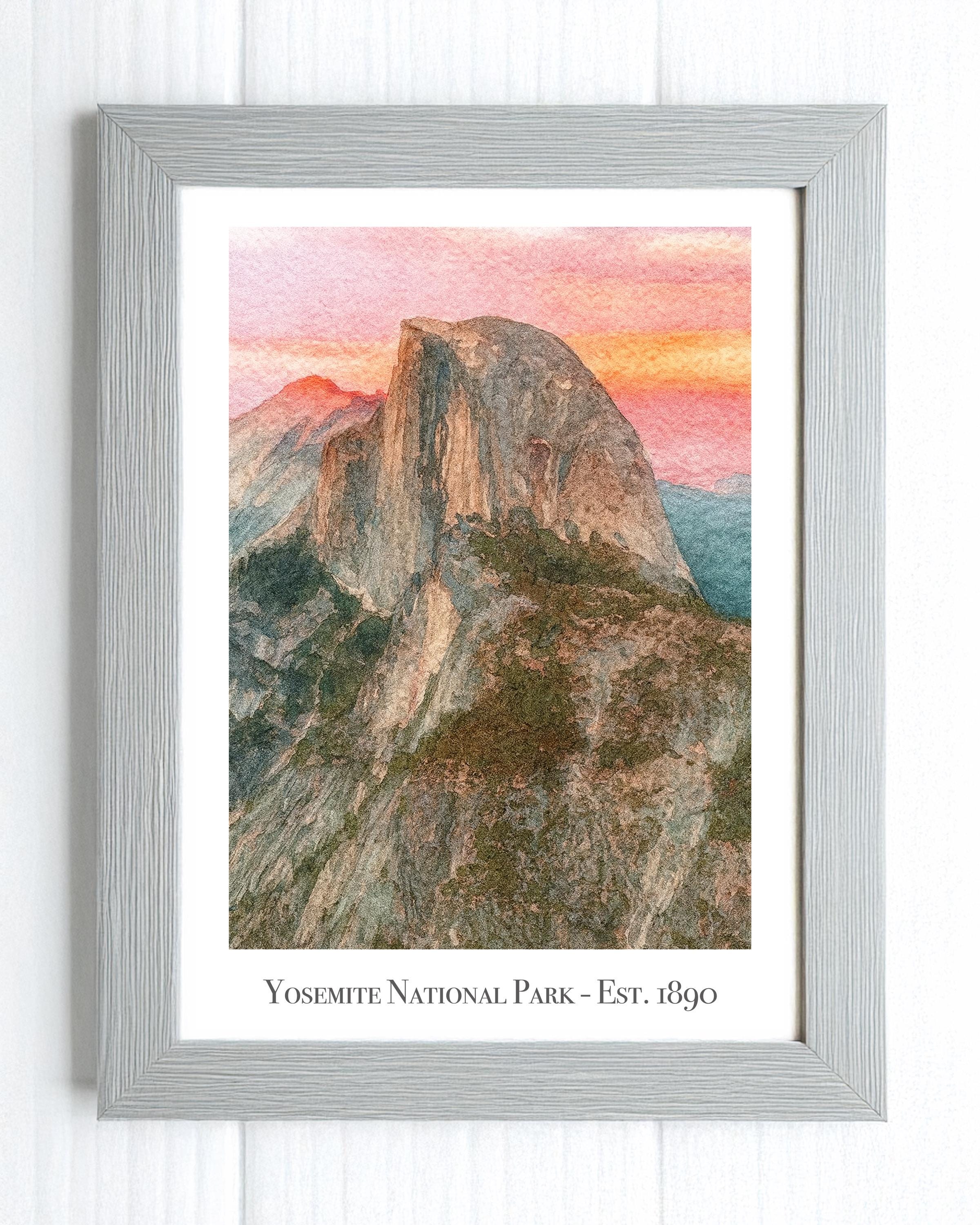 Details: - Print size: 5x7 inches - Medium: Archival quality fine art paper (linen or matte finish) - Text on print: “Yosemite National Park - Est. 1890” * Frame not included