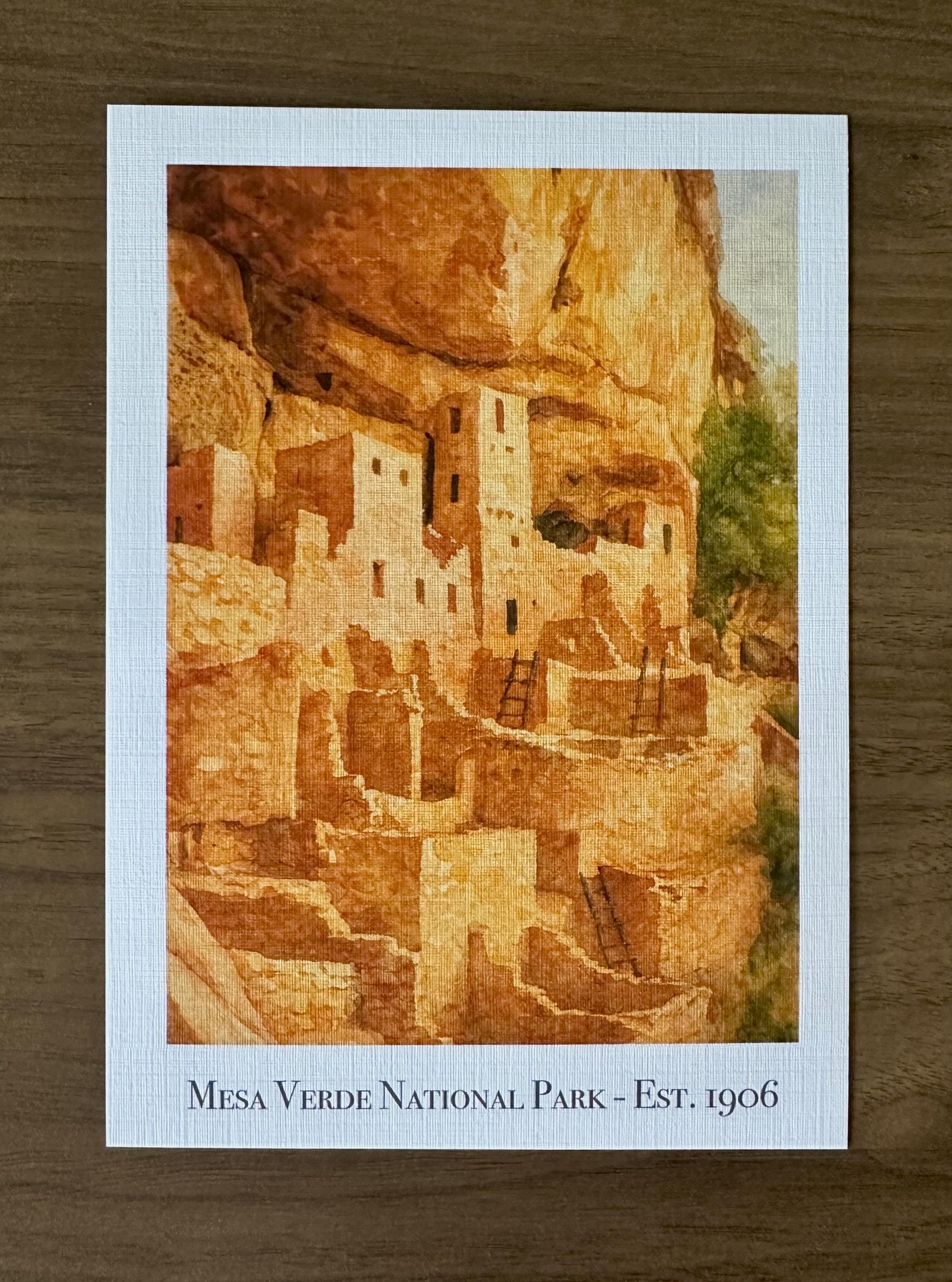 Details: - Print size: 5x7 inches - Medium: Archival quality fine art paper (linen or matte finish) - Text on print: “Mesa Verde National Park - Est. 1906” * Frame not included
