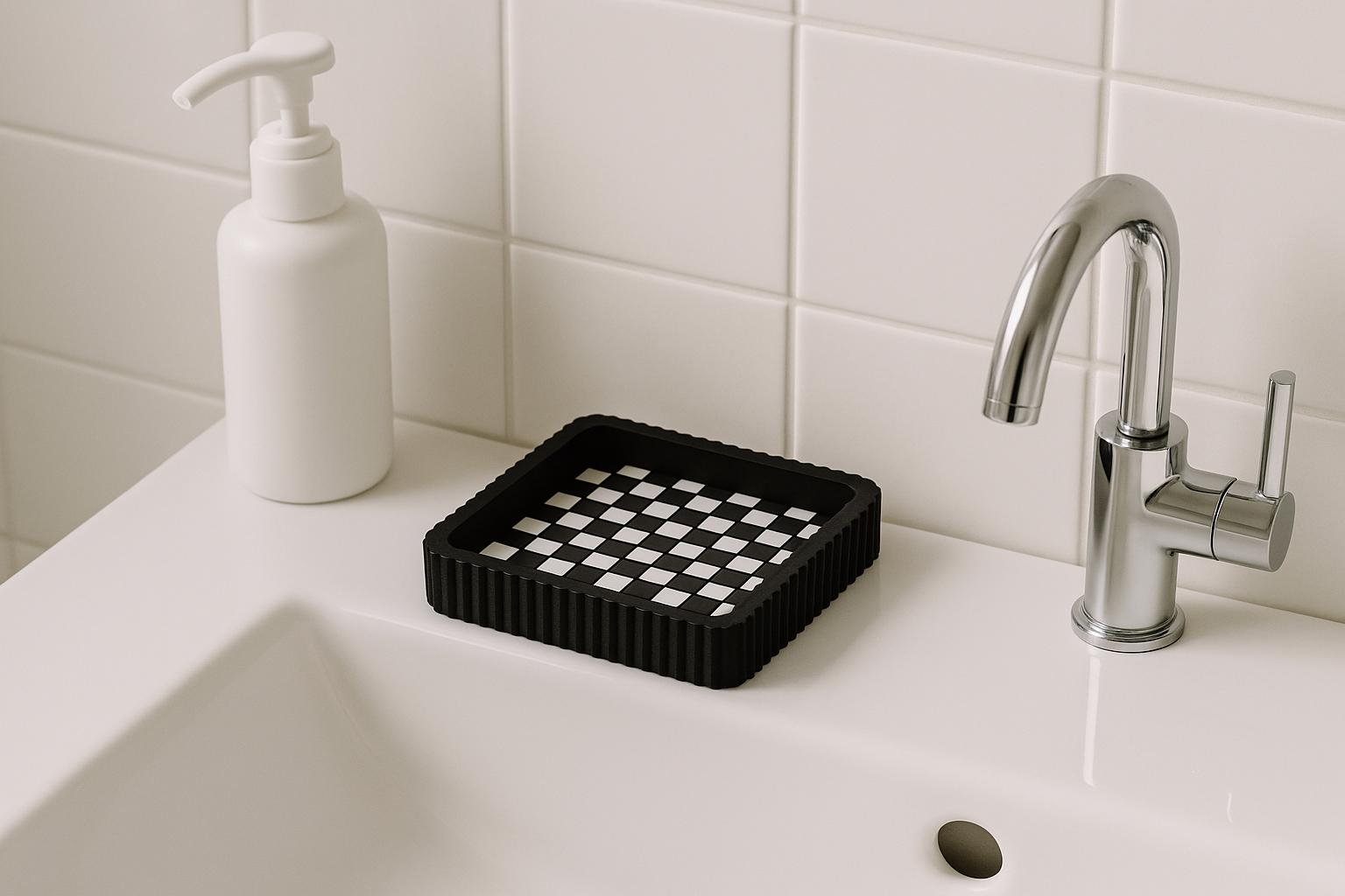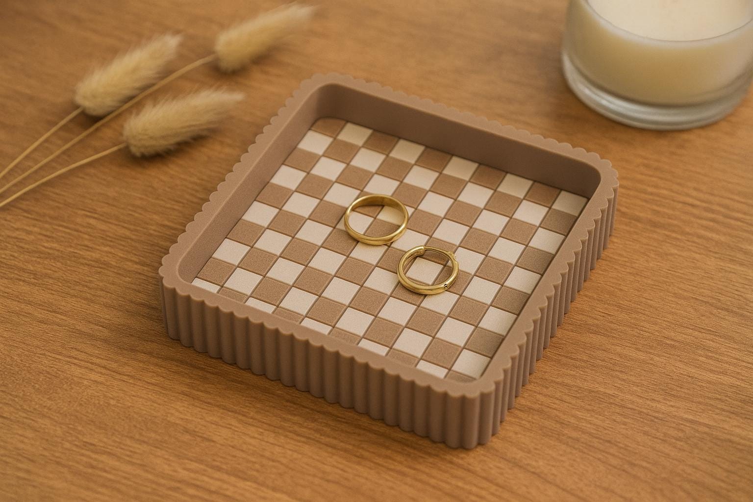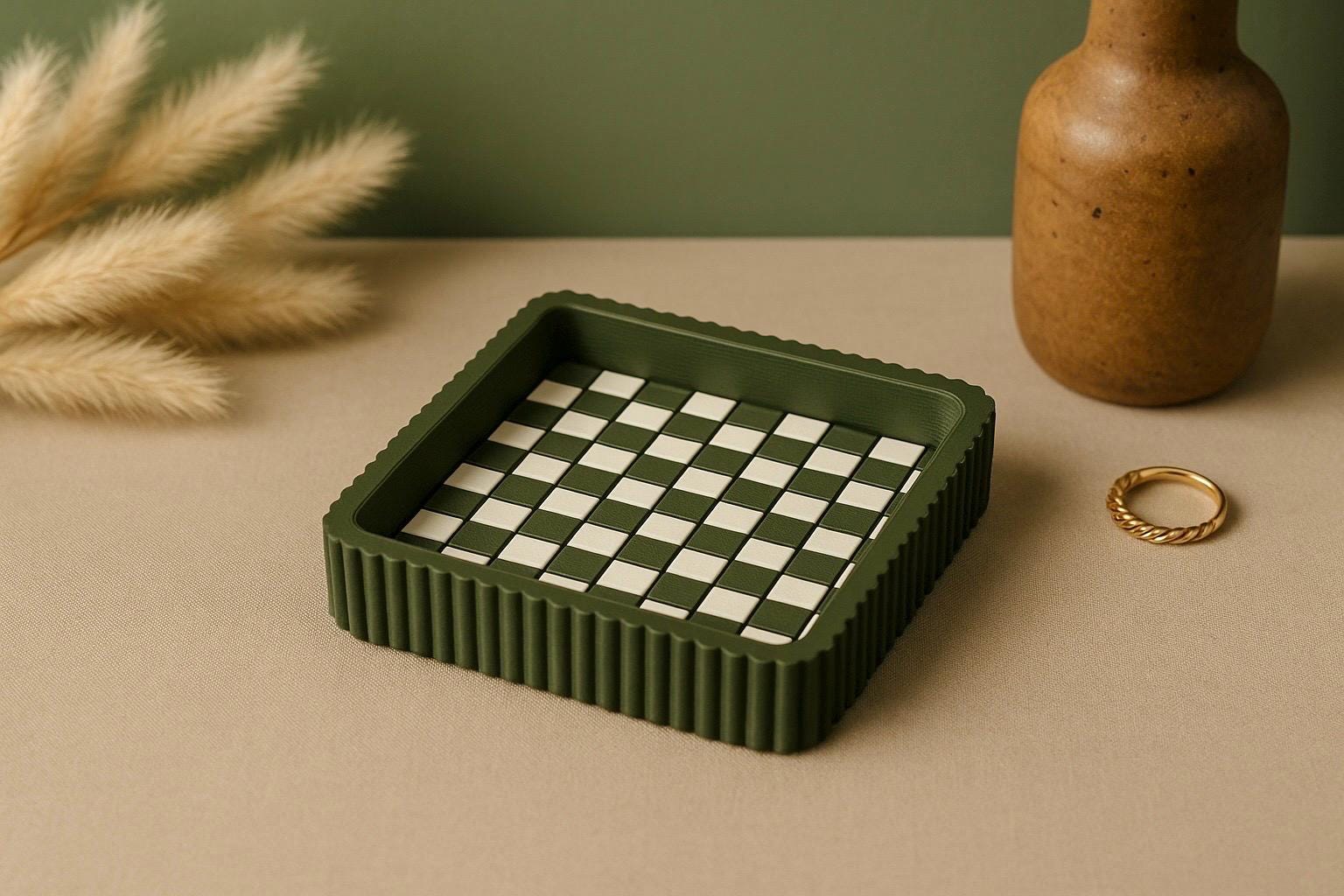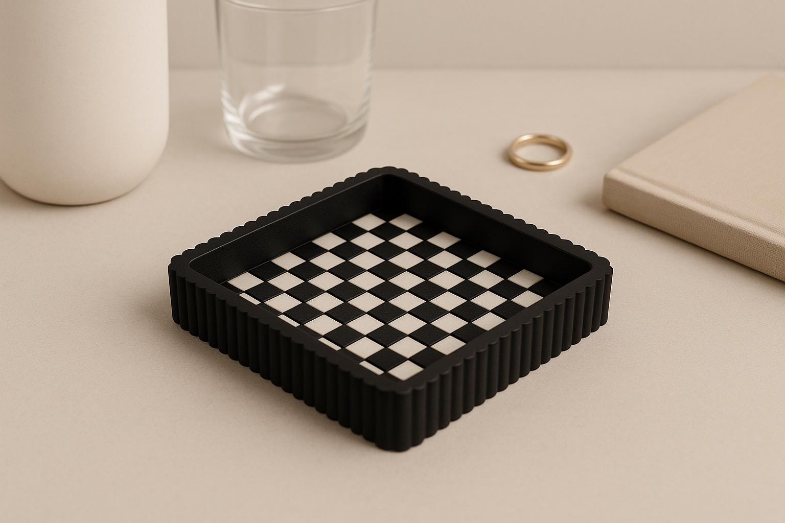 A modern, minimalistic checkered tray. Perfect for jewelry, keys, and other accessories!